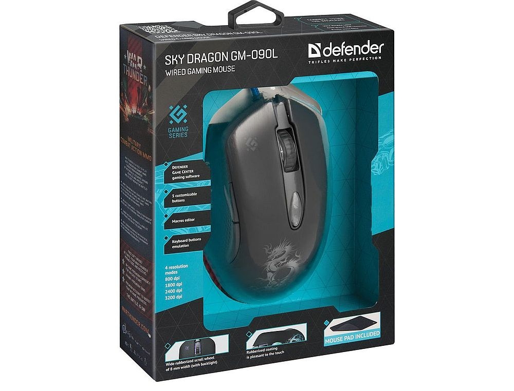 - проводная игровая мышь, подключение по USB, длина кабеля 1.8 м.;
