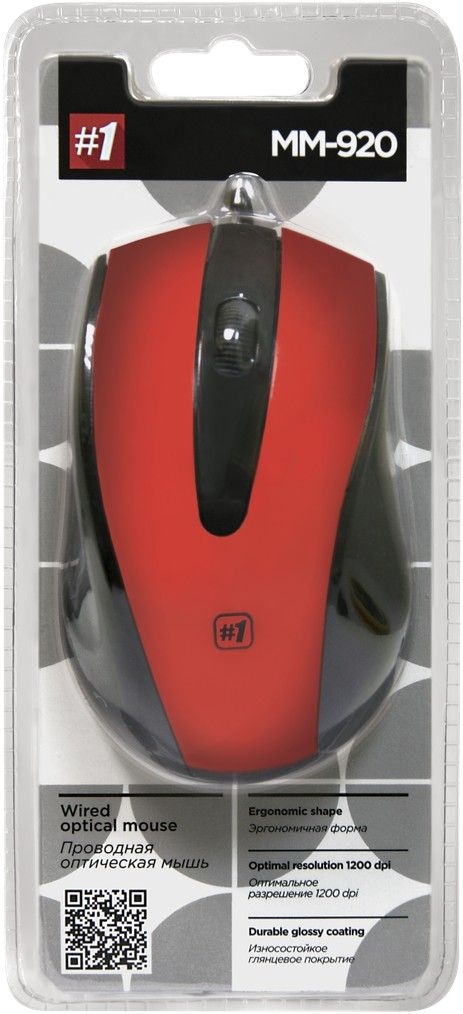 Мышь проводная оптическая Defender MM-920, красный + черный, 3 кнопки