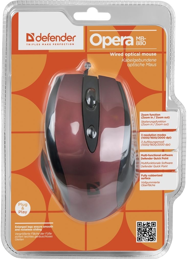 Мышь проводная оптическая Defender Opera MB-880, красный, 6 кнопок, 1000-2000 dpi арт.52832
