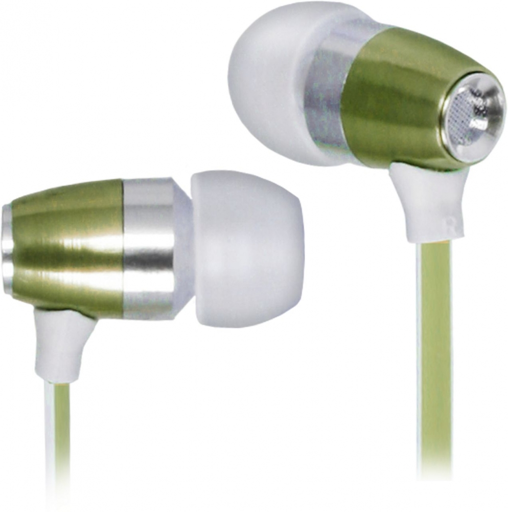 - портативные наушники-вставки, стильный зелёный с отливом металлический корпус;