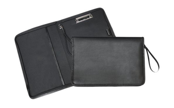 Папка деловая для документов Attomex "Vega", искусственная кожа, металлический прижим для бумаг, на молнии, черная