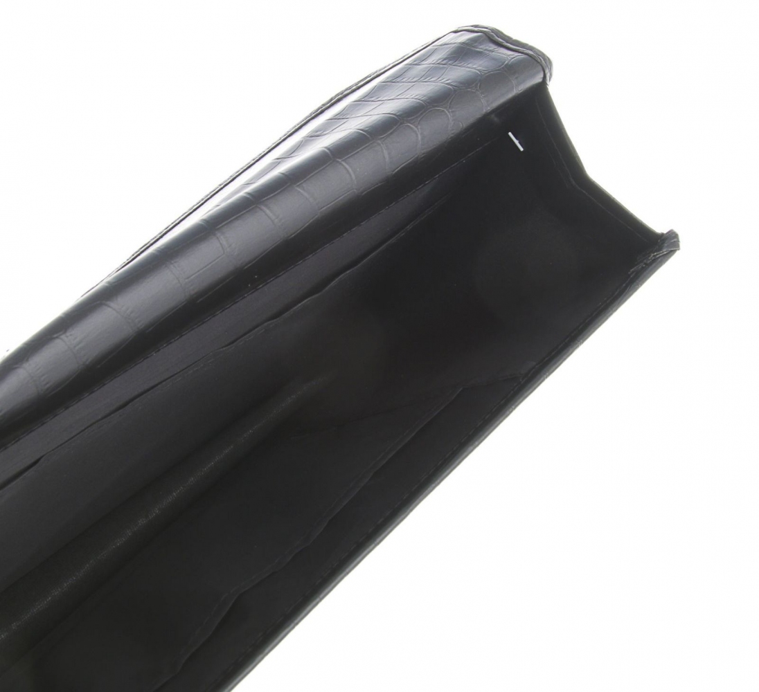 - папка деловая, черный цвет, качественный лакированный кожзам с текстурированием под крокодиловую кожу;
