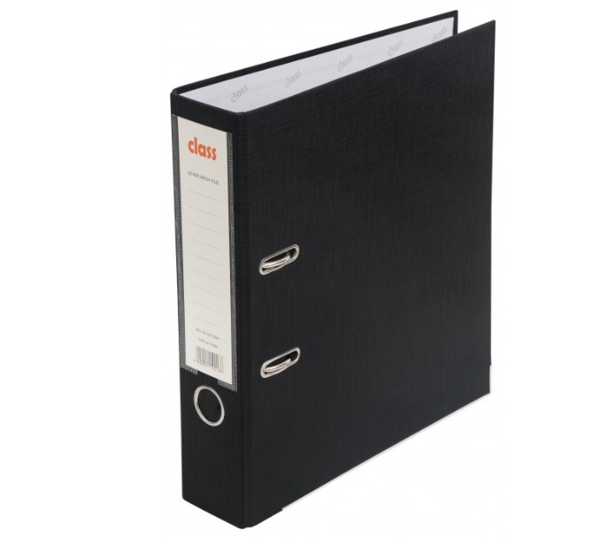 Папка-регистратор A4 75 мм. "CLASS", ПВХ, уголки металл черная арт. А0312-ВК