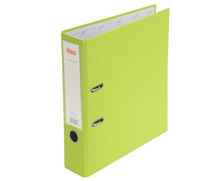 Папка-регистратор A4 75 мм. "CLASS", ПВХ, уголки металл салатовая арт. А0312-LGN