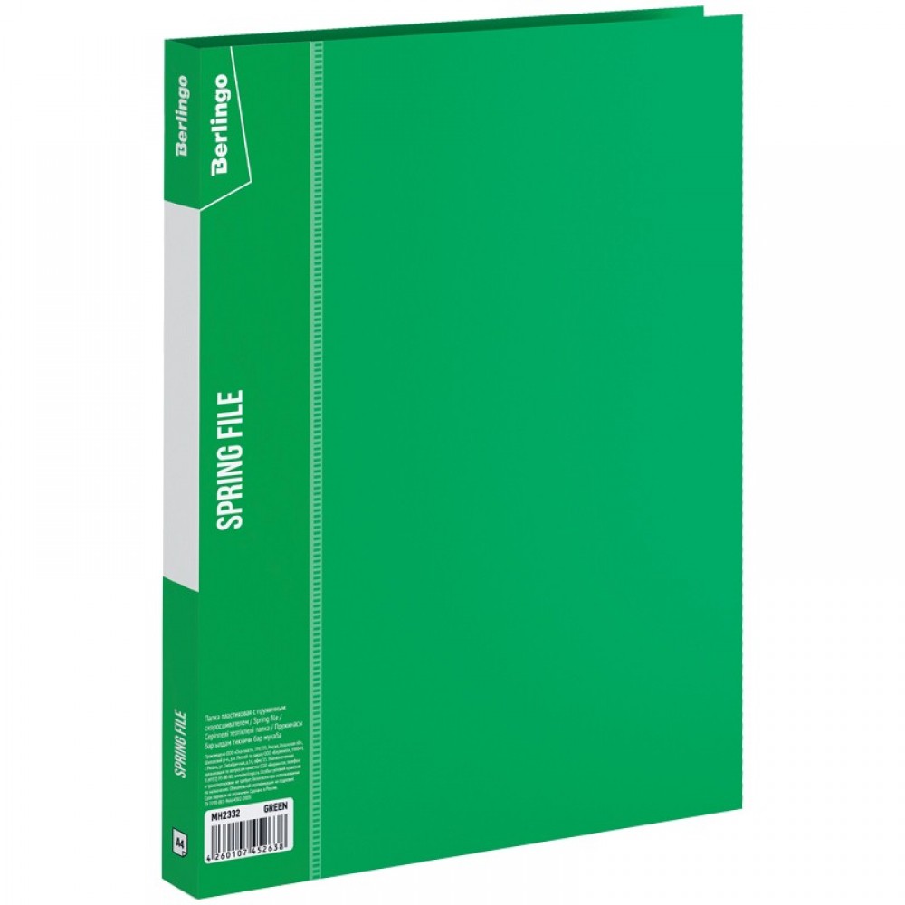 - пружинный механизм зажима листов бумаги, плотный пластик с текстурой "песок" зеленого цвета, дополнительный внутренний карман для мелочей, сменная бумажная этикетка для надписей;