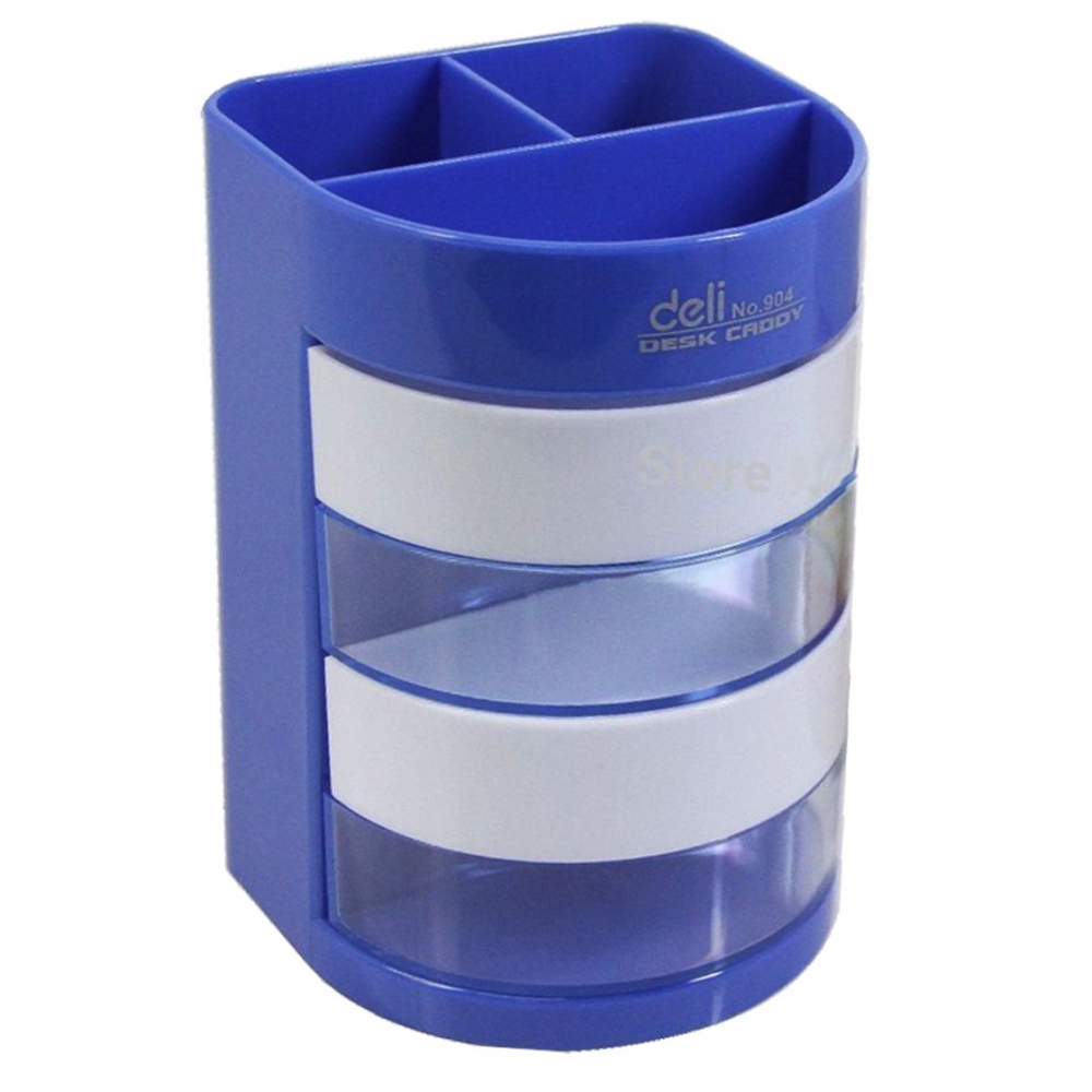 подставка-стакан для канцелярских принадлежностей, цвет корпуса синий, 4 выдвижных отделения (2 прозрачных, 2 не прозрачных), 1 верхнее отделение;