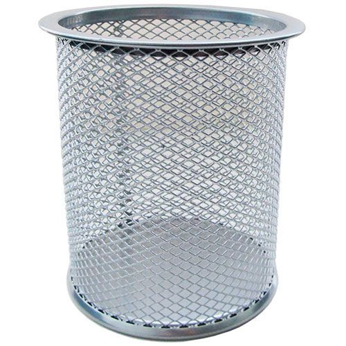 - подставка для канцелярских принадлежностей, стакан, сетчатый металл, цвет серебро;