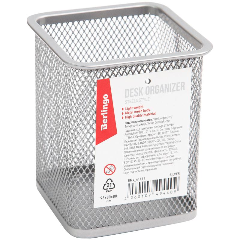 Подставка для канц. принадлежностей мелаллическая, квадратная, стакан, серебро В804