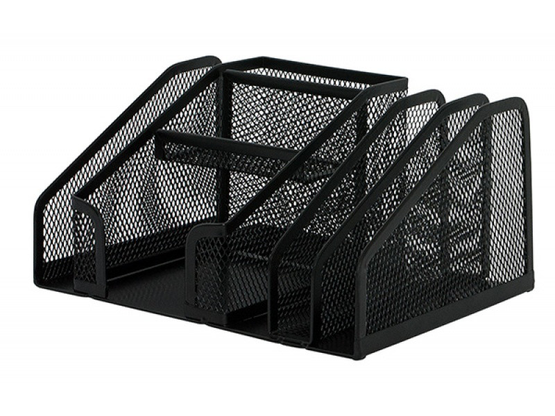 - подставка для канцелярских мелочей и принадлежностей: выполнена из металла в сетку, устойчивое к царапинам порошковое покрытие металла, 6 отдельных секций;