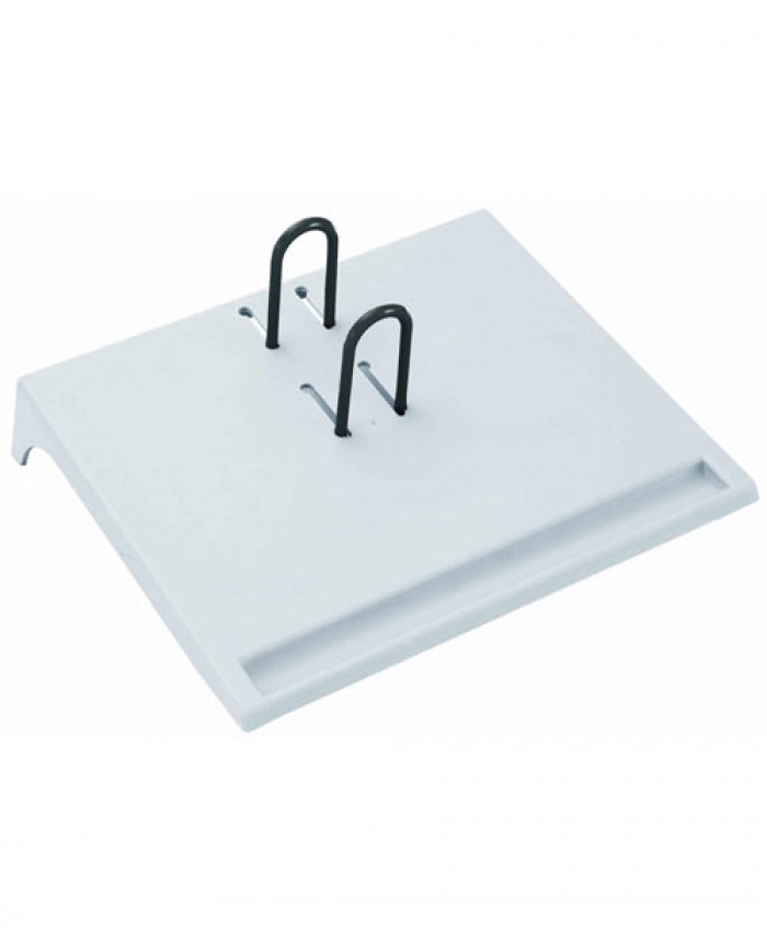 Подставка для перекидного календаря, с двумя держателями, на ножках, для использования дома или на работе. Материал подставки - прочный пластик пепельного цвета.