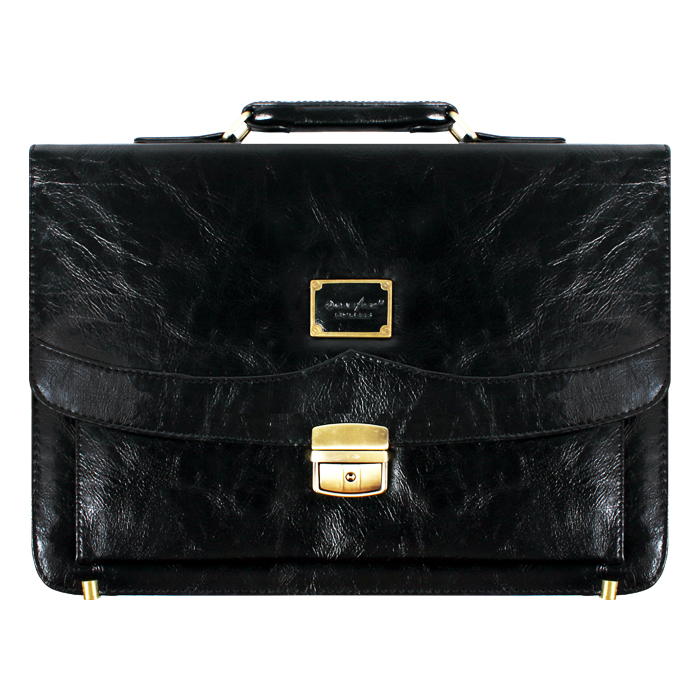 Представительный деловой портфель для документов. Изготовлен из качественной искусственной кожи черного цвета. Внутри - 3 отделения для документов, внешний карман на молнии, закрывается на застежку. Регулируемый плечевой ремень. В комплекте с портфелем внутри - 8-ми разрядный калькулятор.