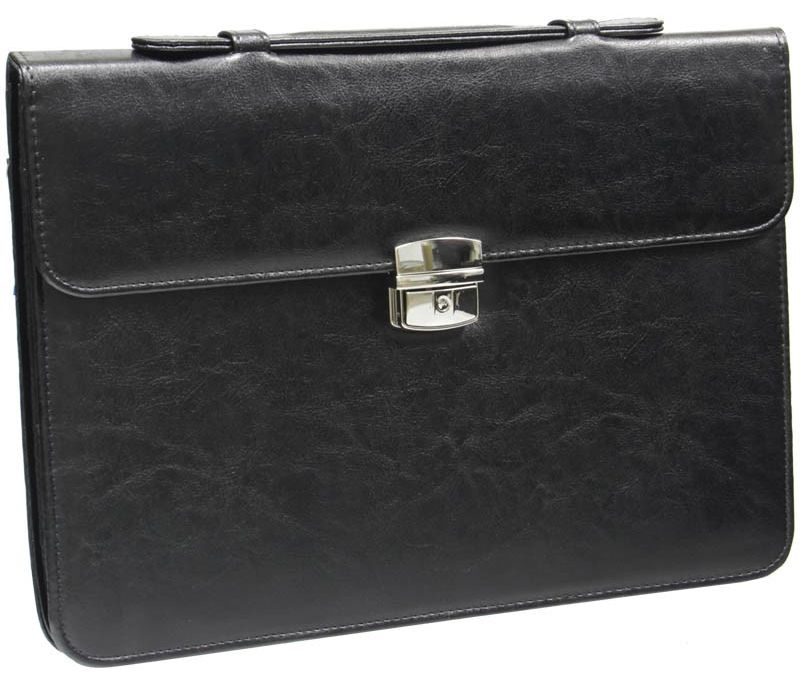 - качественный кожзам чёрного цвета с текстурированием, ручка кожаная;