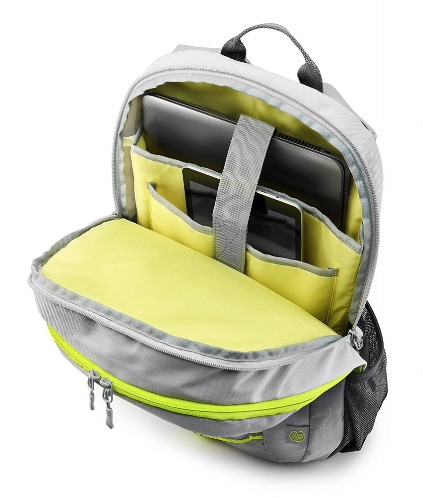 - брендовый городский рюкзак для ноутбука и другой электроники - цвет салатовый+серый;