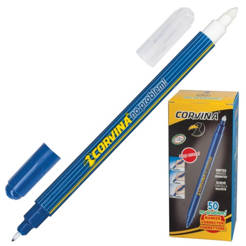 Ручка капиллярная двусторонняя, пишет и стирает, с колпачками, удобный корпус синего цвета, синий цвет чернил.