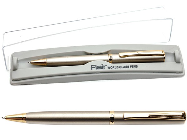 • подарочная ручка в футляре, корпус сатин золото, выполнен из хромированного металла;