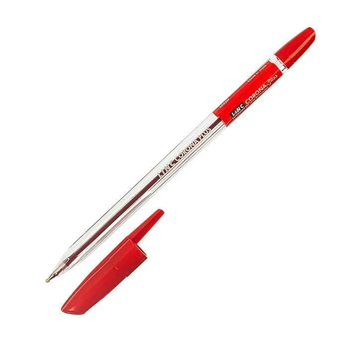 Ручка шариковая Linc "Corona Plus" прозрачный круглый корпус, красная (арт.3002N/red)
