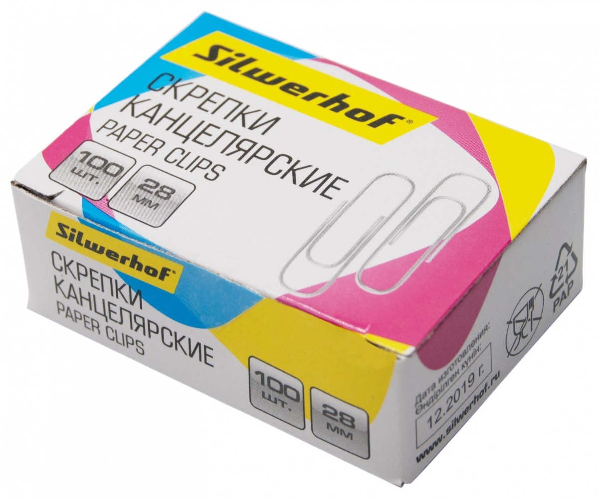 Скрепки 28 мм. Silwerhof, оцинкованные (100 шт) (491029)