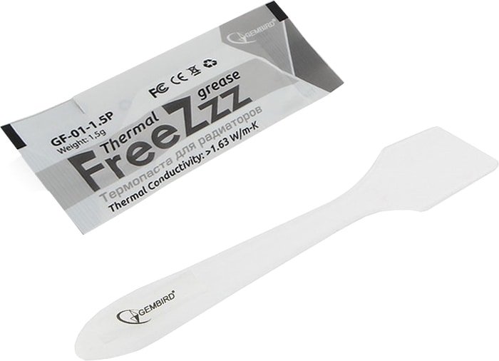 - термопаста, одноразовая пакетированная упаковка, теплопроводность 1.63 Вт/м-К, сопротивление < 0.249 м? - °С/Вт, вес 1.5 гр.;
