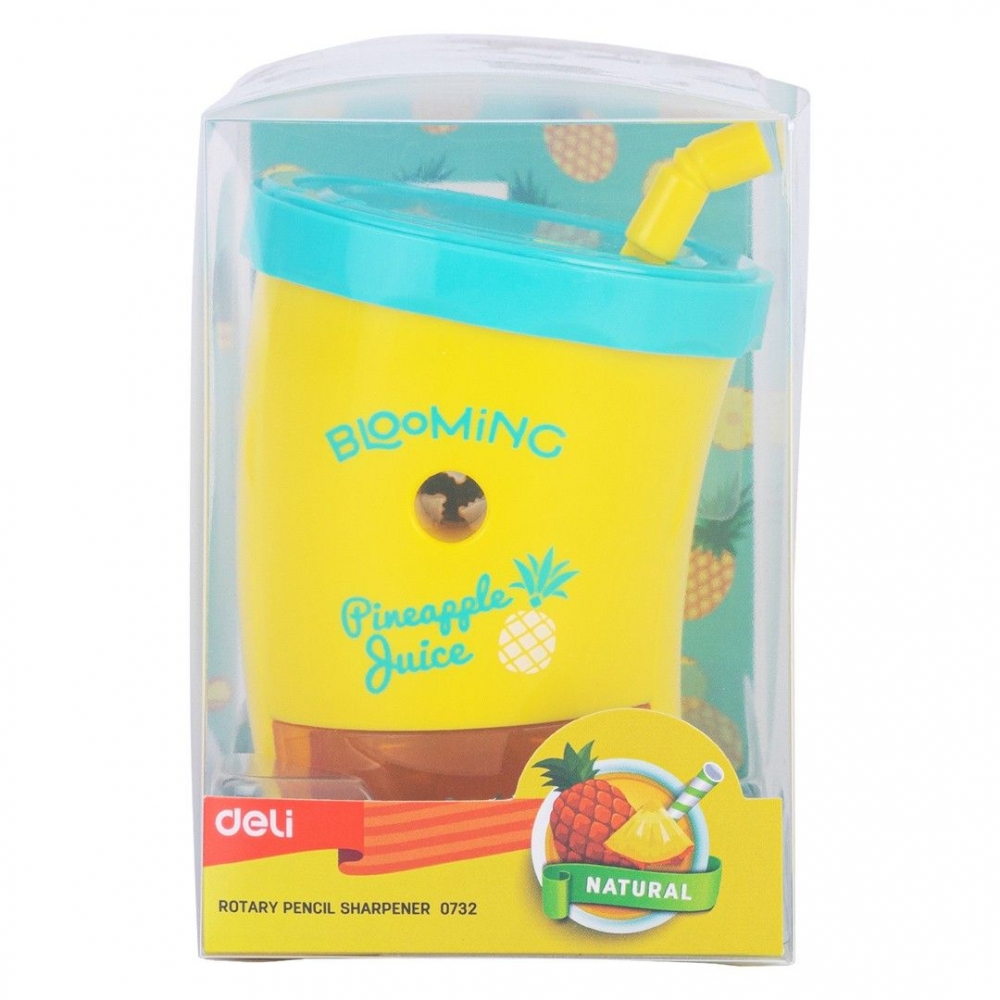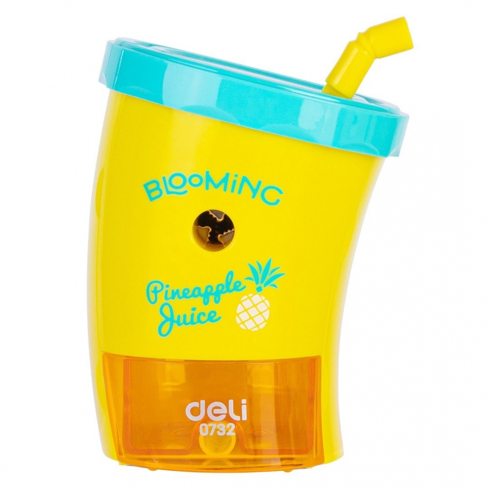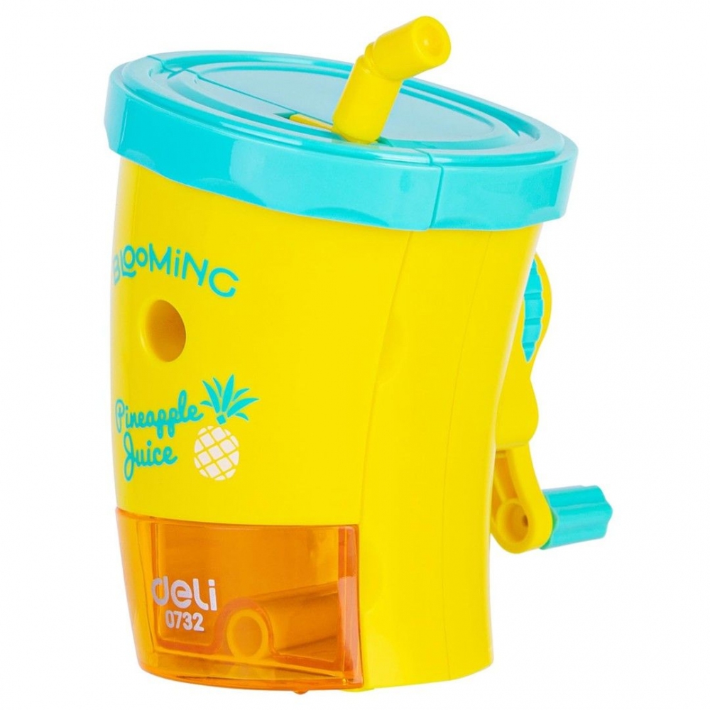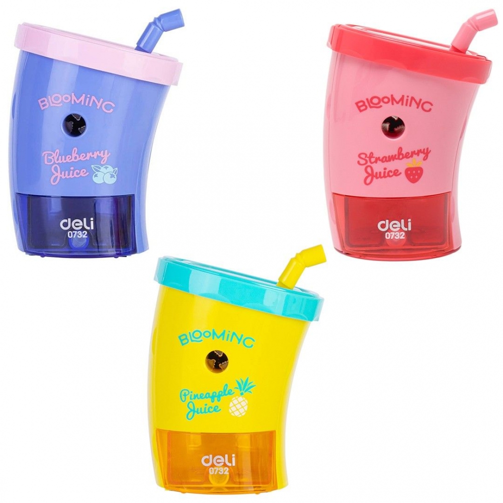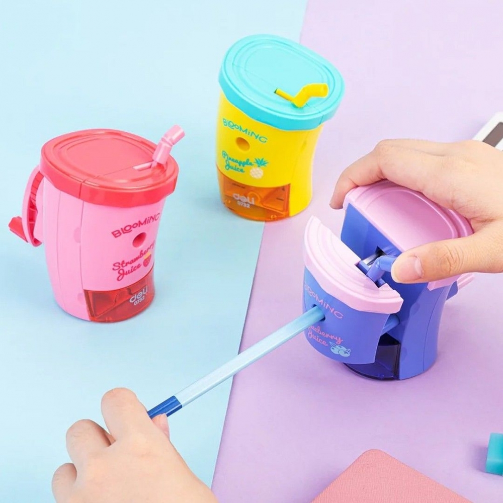 - точилка механическая Deli "Стакан с трубочкой" в ярком цветовом решении;