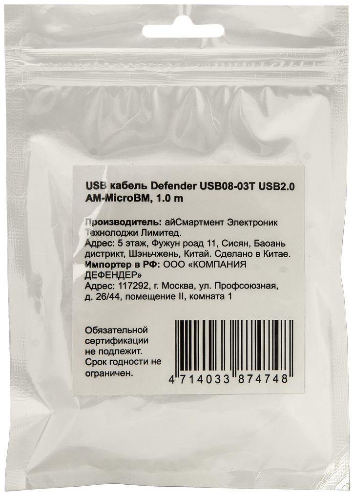 Кабель microUSB DEFENDER USB08-03T подходит для подключения смартфонов, навигаторов, цифровых фото-видео камер, а также планшетов, к ПК. Скорость передачи данных согласно стандарта USB 2.0, тканевая оплетка.