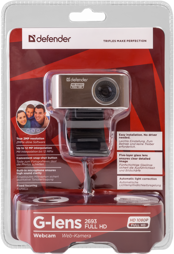 Веб-камера высокой четкости стандарта FullHD. Реальное разрешение матрицы 2 мегапикселя, интерполяция до 12 мегапикселей. Пятислойная стеклянная линза, фокус фиксированный.