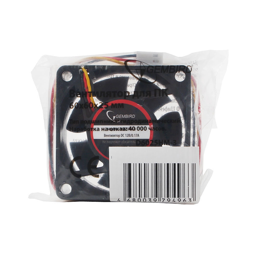 Вентилятор Gembird D6025HM-3 60x60x25, гидродинамический, 3 pin, провод 25 см