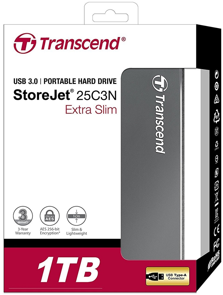 Внешний жесткий диск, форм-фактор 2.5", алюминиевый матовый корпус пепельного цвета; интерфейс передачи данных USB 3.x (передача данных до 5 Гбит/с), питание от USB порта, кабель в комплекте.