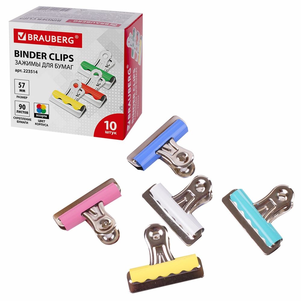 Зажим для бумаг 57 мм. Brauberg, цветной (223514)