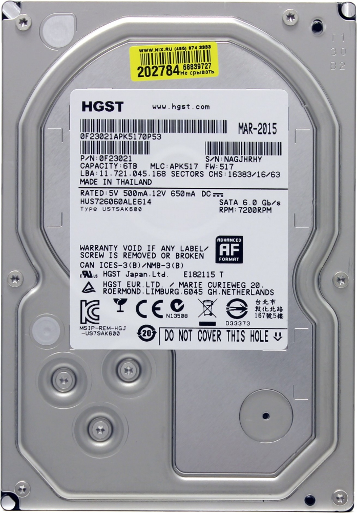 Жесткий диск для сервера. Объем 6 терабайт.